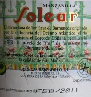 L8186 oznacza butelkowanie w 186 dniu roku 2008, a ponieważ jest to bardziej wytrzymałe amontillado, mogę spać spokojnie. Problemy miałem zawsze z Barbadillo, ich system kodowania była dla mnie wielką tajemnicą. Do wczoraj: