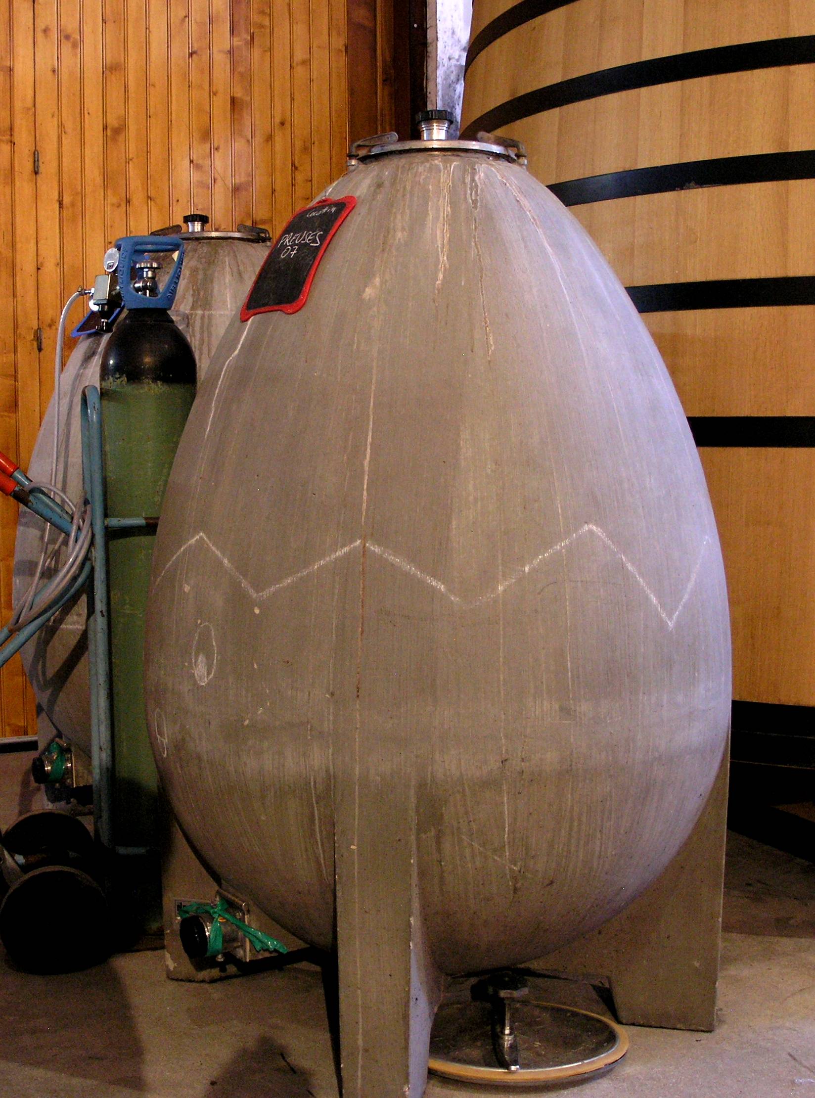 Na koniec coś dla osób zainteresowanych sprawami nieco bardziej technicznymi. W artykule w Drinks Business Sally Easton przygląda się jajom, to znaczy betonowym zbiornikom fermentacyjnym mającym kształt wielkiego jajka, takim jak na przykład to jajo, sfotografowane przeze mnie kilka lat temu w Chablis.