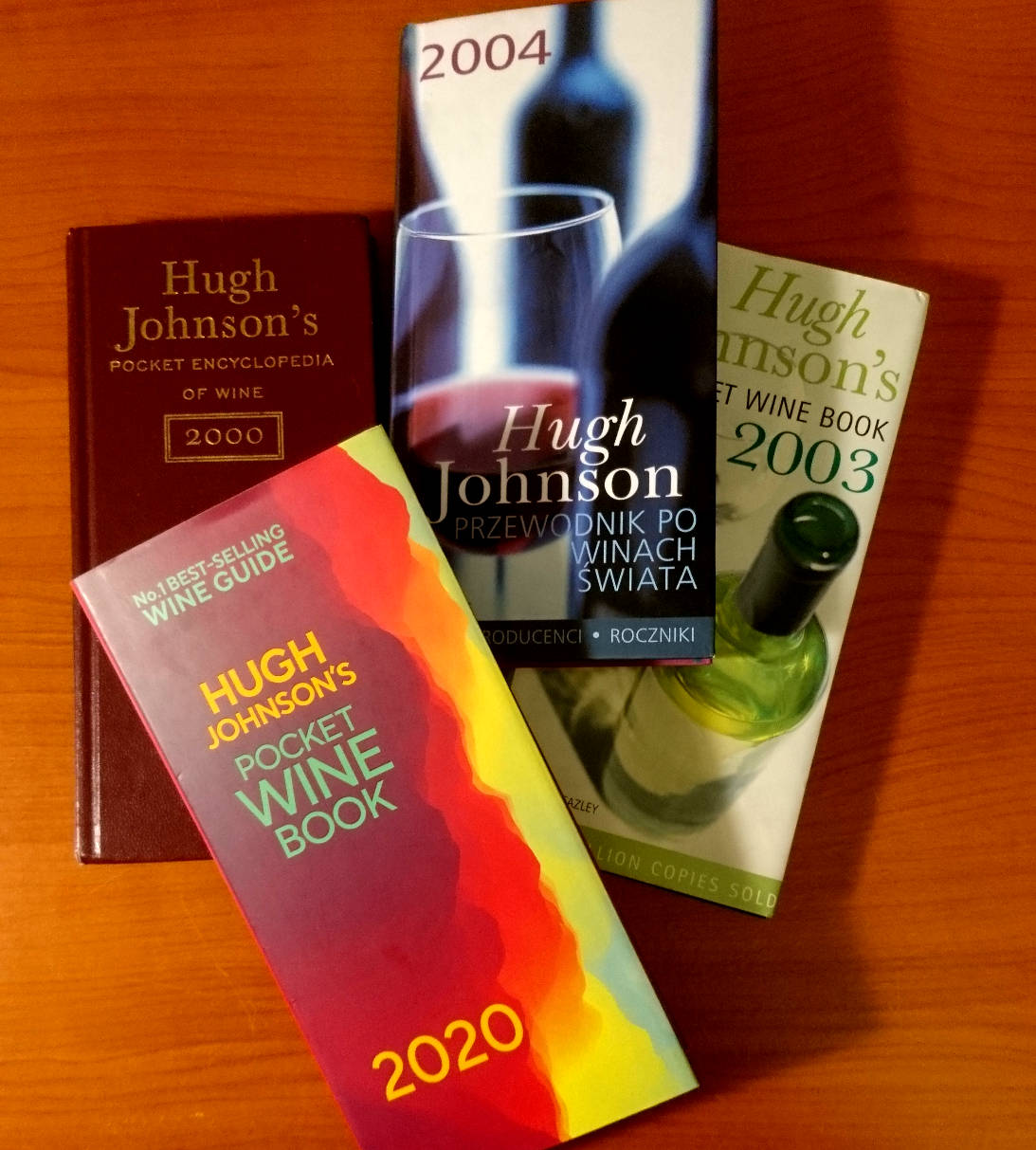 Pierwsze wydanie Hugh Johnson’s Pocket Encyclopedia of Wine pojawiło się w roku 1977 i od tej pory, stale aktualizowane, ukazuje się co roku, ostatnio jako Hugh Johnson’s Pocket Wine Book. Dziś tworzy jej zespół ekspertów (od kilku wydań redaktorką naczelną jest Margaret Rand), ale Hugh Johnson wciąż bierze udział w jej redagowaniu. Co najmniej dwa razy wyszła też polska edycja (raz dla klientów jednej z sieci komórkowych, innym razem była powszechnie dostępna – wydało ją wtedy wydawnictwo WIG Press, pierwszy wydawca Magazynu Wino). Istnieje też wersja „magnum”, Hugh Johnson’s Wine Companion, której ostatnie jak dotąd, szóste wydanie (pod redakcją Stephena Brooka) u kazało się w roku 2009. Mam piąte wydanie, z roku 2003, i nie pamietam kiedy zajrzałem do niego po raz ostatni. „Duży Johnson” ma dziś dużą konkurencję, „małego”, mimo kilku ambitnych prób, nic jak dotąd nie zastąpiło.